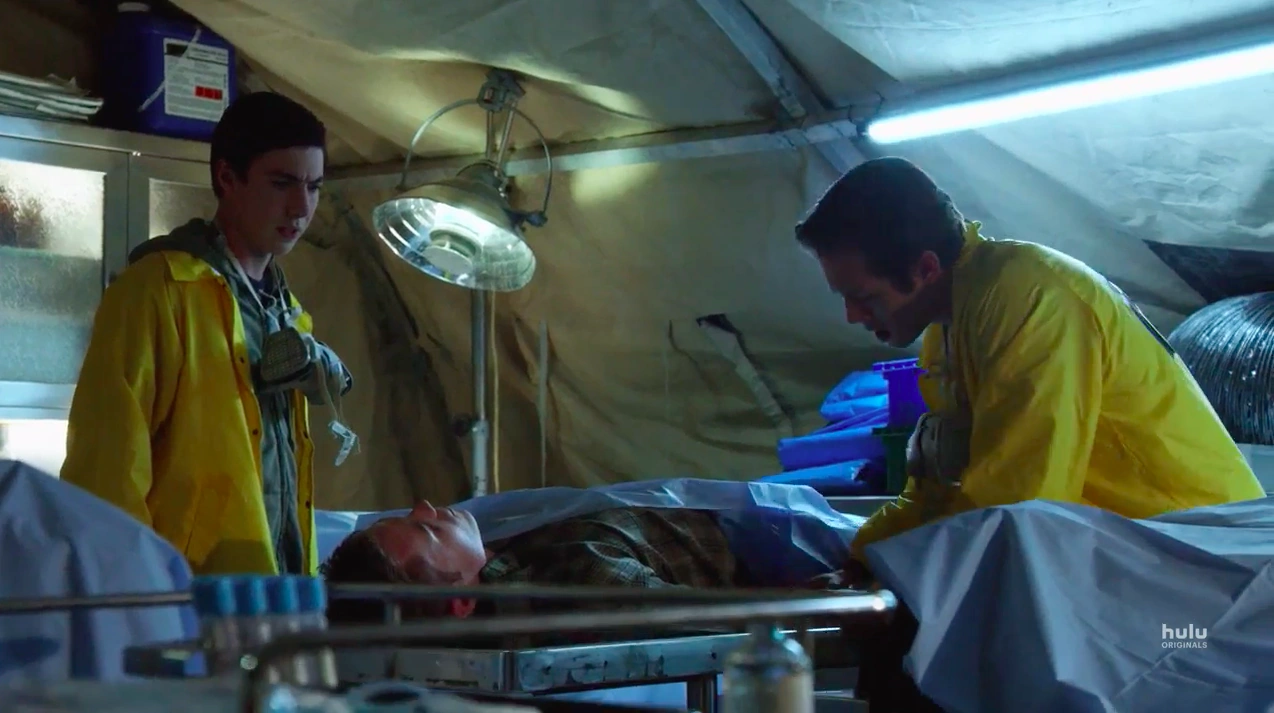 John Collins introduces himself and tells them that he'll be taking them somewhere safe. Despite having a hazmat suit he claims that he has a vaccine for the air outside and tells them to pack their stuff so they can get going. Barrett is suspicious of the vaccine and decides to steal one and test it on Mr. Oink. Grover believes that Barrett is just causing problems until he sees the effect the vaccine has on Mr. Oink. Collins knocks out Barrett and Grover when he sees that they've figured him out, and they are too late to stop him from injecting Natalie with the poison.